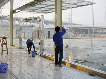 5、 定期對(duì)公共區(qū)域的所有玻璃進(jìn)行清擦,保證明亮無(wú)塵。